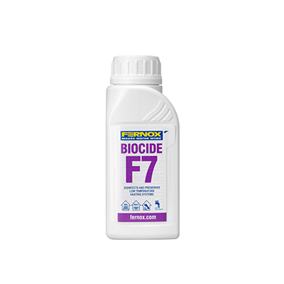 Biocide F7 schützt vor Bakterien- und Pilzbefall in Heizungsanlagen und nicht verdampfenden Kaltwassersystemen in Wohngebäuden. Fernox empfiehlt dringend, zusätzlich zu Biocide F7 einen Fernox Protector