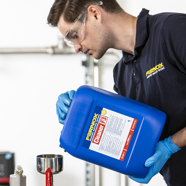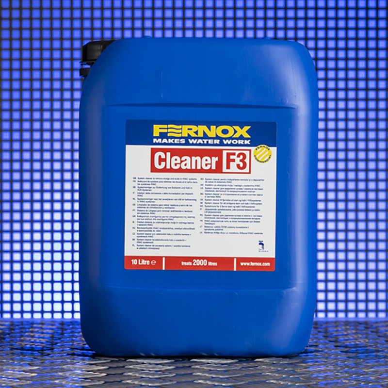 Der Fernox Cleaner F3 wird in 10-Liter-Behältern geliefert. Der Fernox Cleaner F3 wird als ungefährlich eingestuft, aber wie bei allen Chemikalien: Außerhalb der Reichweite von Kindern aufbewahren. Nicht mit anderen Chemikalien mischen. Bei Kontakt mit Augen oder Haut sofort mit viel Wasser abspülen.