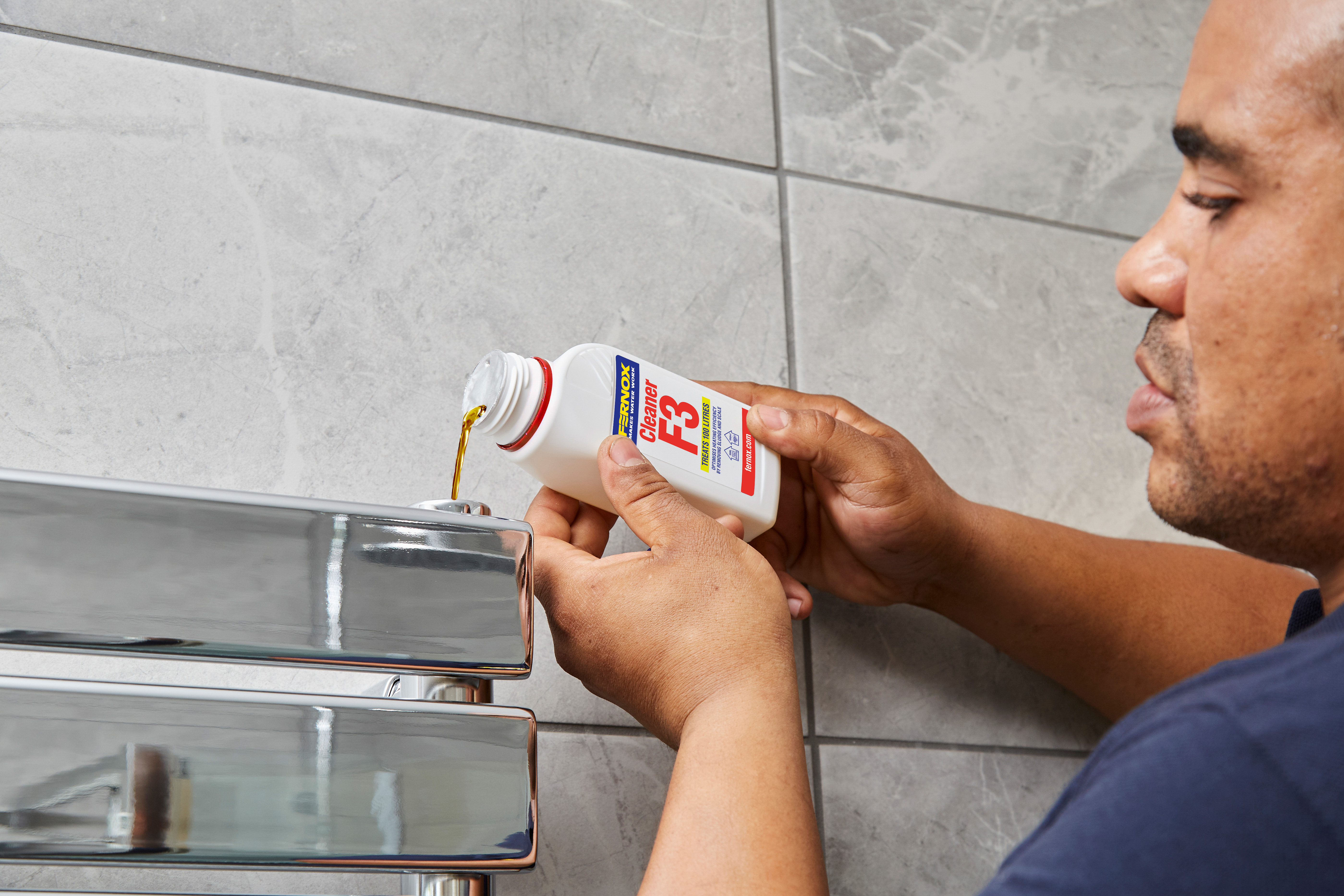 Der Cleaner F3 ist ein wirksamer, universeller, pH-neutraler, nicht schäumender Flüssigkeitsreiniger, der Schlamm, Kesselstein und Ablagerungen von vorhandenen Zentralheizungssystemen entfernt,