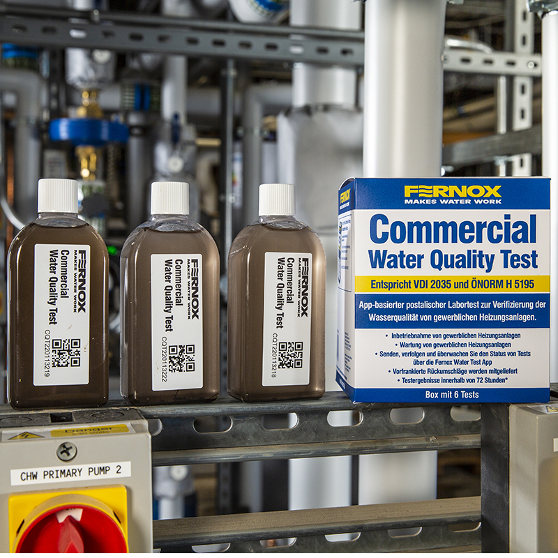 Wasserqualitätstest für den Handel Der Fernox Wasserqualitätstest für den Handel ist ein App-basierter postalischer Labortest zur Überprüfung der Qualität von Heizungswasser in gewerblichen Anlagen. Dieses Produkt testet Wasserqualitätsparameter in Übereinstimmung mit den Normen VDI 2035 und ÖNORM H-5195 und deckt die obligatorischen Testparameter für die Füllwasseranalyse, Vorinbetriebnahme und Wartung von Heiz- und Kühlsystemen ab. Die Ergebnisse liegen innerhalb von 72 Arbeitsstunden nach Erhalt der Probe vor. Die Fernox Wassertest-App, die kostenlos heruntergeladen werden kann, bietet eine schnelle und bequeme Möglichkeit, auf Prüfberichte zuzugreifen, sie zu verfolgen, zu überwachen und zu verwalten.